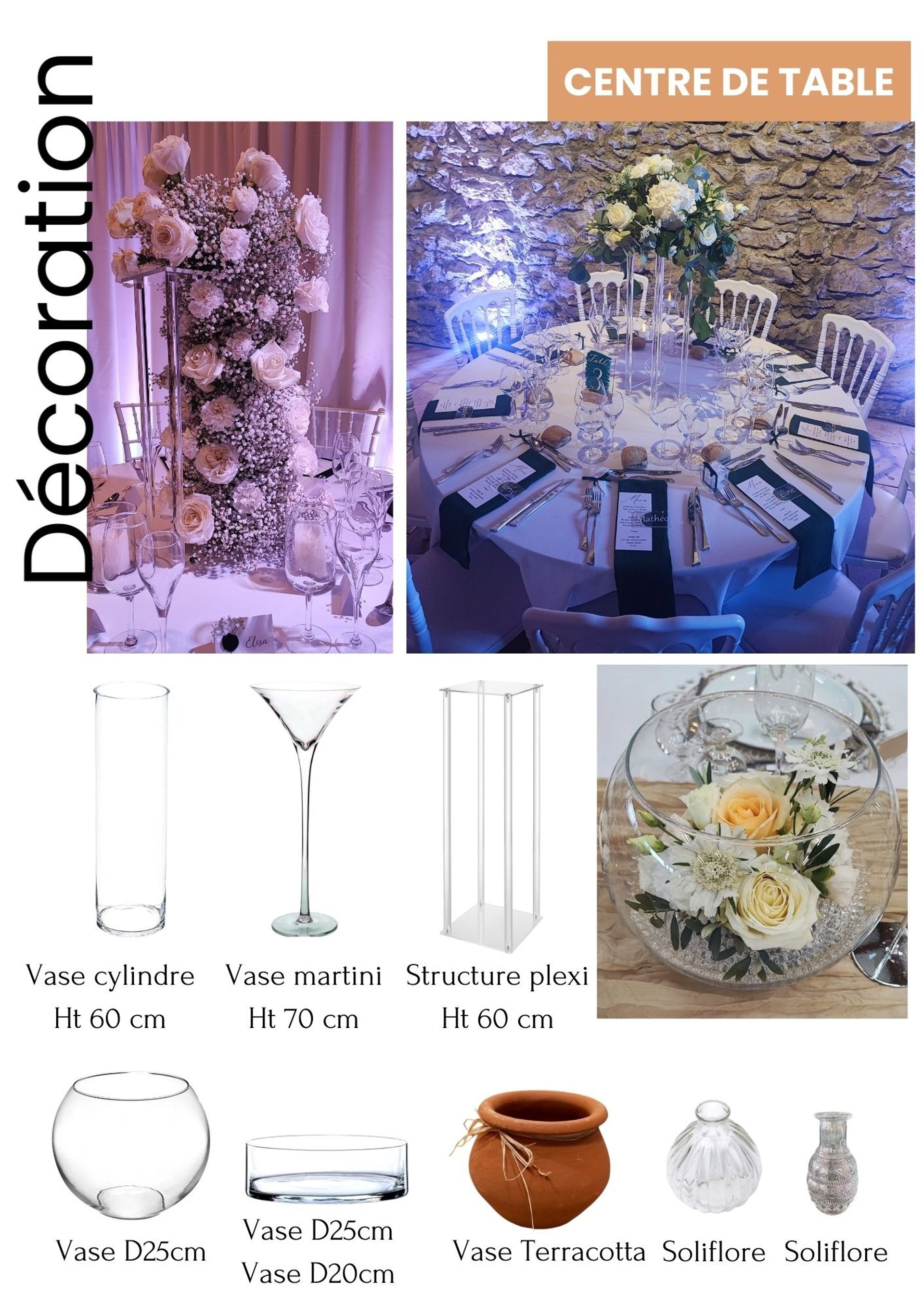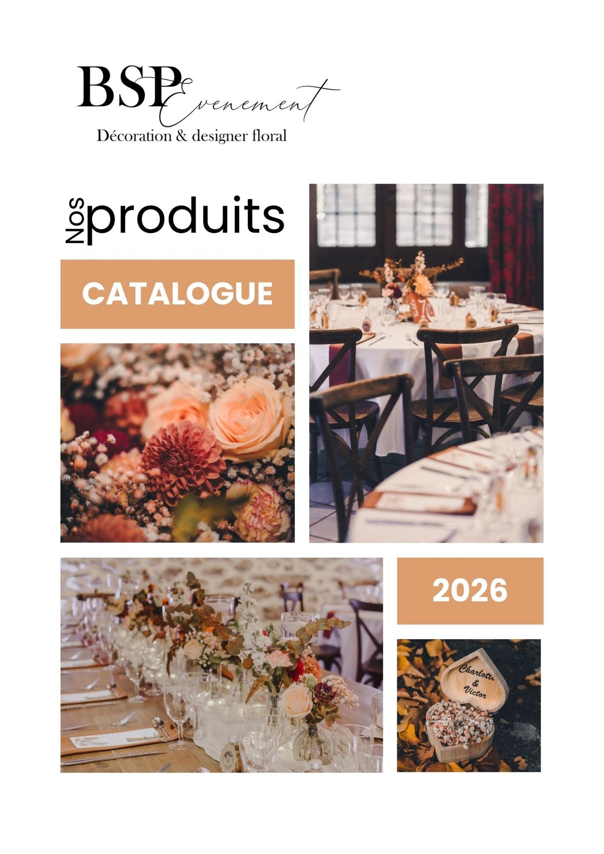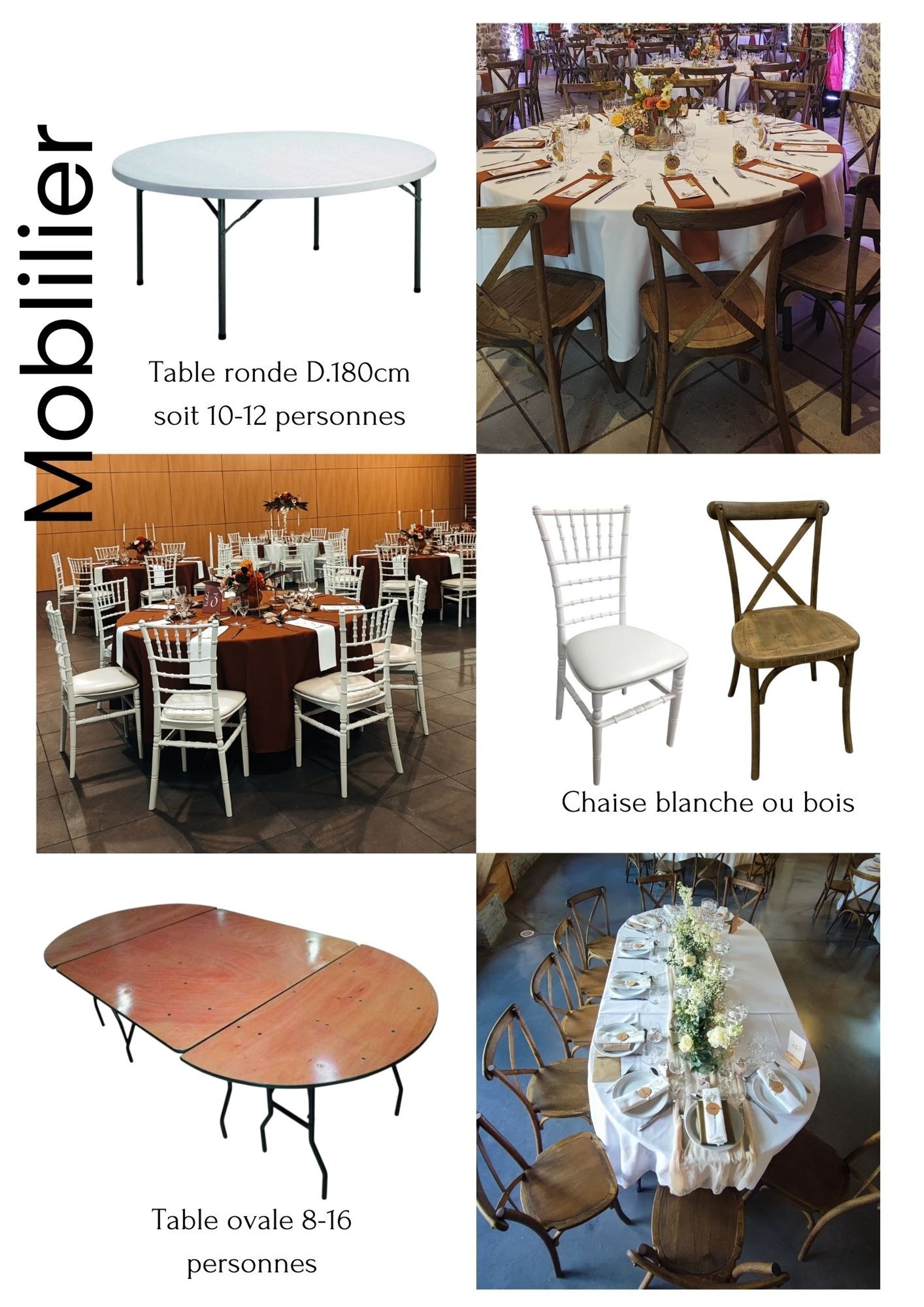 Catalogue de nos chaises, tables, décoration florale et papeterie
