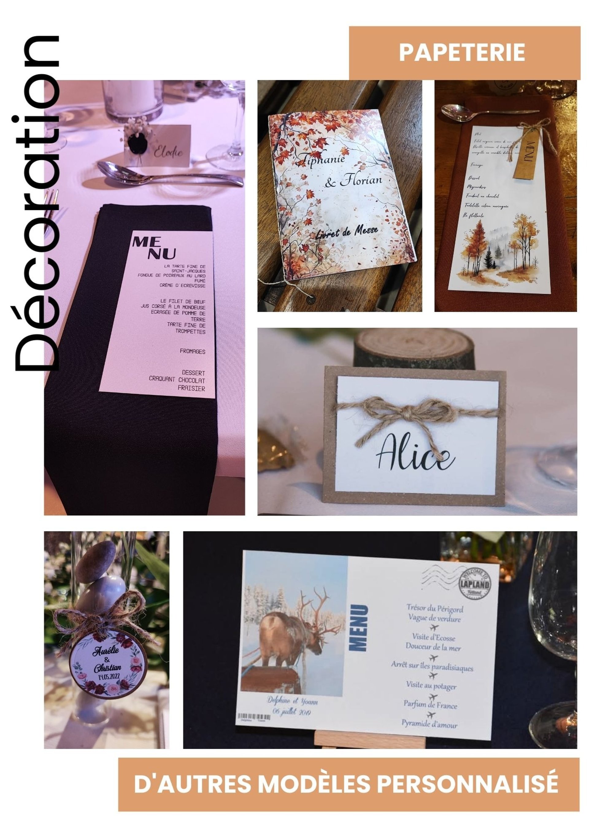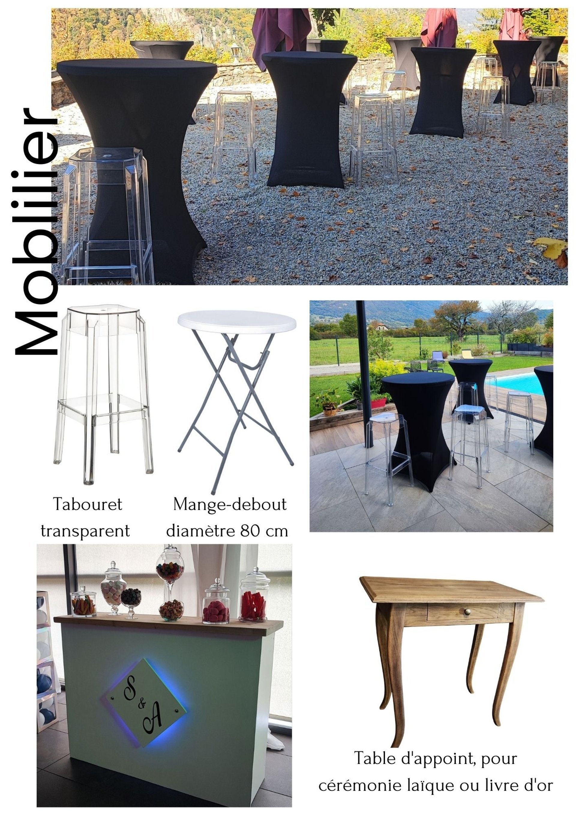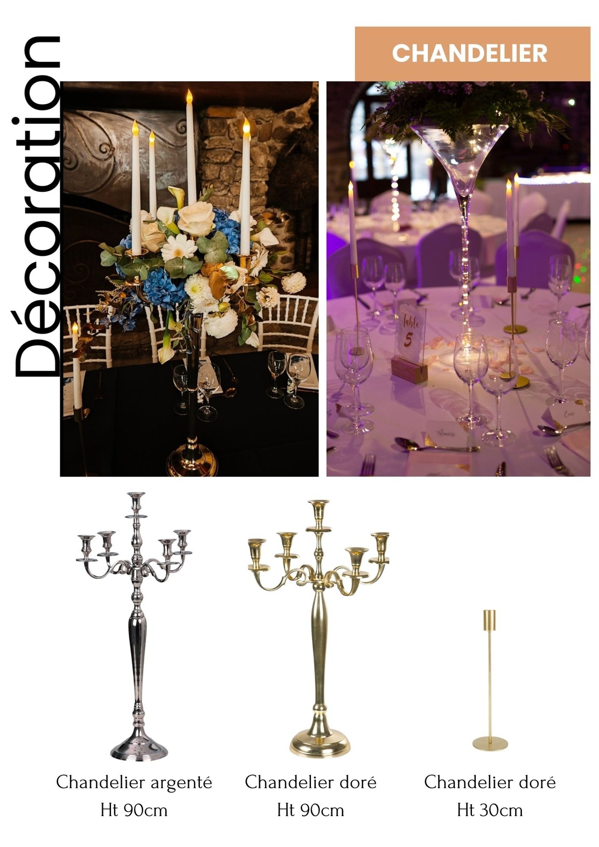 Catalogue de nos chaises, tables, décoration florale et papeterie